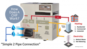 First, we need to understand what a cogeneration system is and how it is best used to maximize its benefits and financial returns for your applications. Cogeneration is the simultaneous generation of heat and power, for commercial buildings and or industrial applications. Cogeneration is also known as “combined heat and power” (CHP).